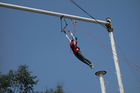 9月20日一早,正式訓(xùn)練之前,教練先是通過團(tuán)隊(duì)熔煉,打破堅(jiān)冰、營(yíng)造團(tuán)隊(duì)氛圍,建立起了相互信任的基礎(chǔ)。緊接著在教練員的指導(dǎo)下,參訓(xùn)人員分成兩隊(duì)在漢諾塔、高空斷橋、空中單杠、時(shí)速極限、激情150活動(dòng)上進(jìn)行了比拼。其中漢諾塔、激情150訓(xùn)練,使大家強(qiáng)烈意識(shí)到團(tuán)隊(duì)成功是個(gè)人成功的基礎(chǔ);個(gè)人成功必須建立在團(tuán)隊(duì)其他成員的共同努力與協(xié)作的基礎(chǔ)之上;高空斷橋、空中單杠等高空項(xiàng)目時(shí),團(tuán)隊(duì)每位成員必須膽大心細(xì),敢于挑戰(zhàn),相互鼓勵(lì),戰(zhàn)勝恐懼;整個(gè)訓(xùn)練項(xiàng)目下來,兩隊(duì)成員實(shí)力不分上下,各有優(yōu)勢(shì),但我們比的不是高低,比的不是結(jié)果,而是在整個(gè)過程中,我們收獲了什么,感悟了什么。