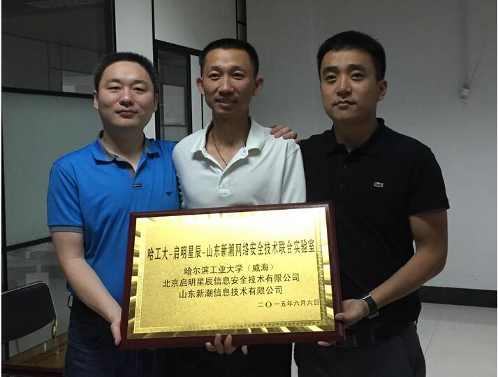 2015年6月6日,山東新潮信息技術(shù)有限公司與哈爾濱工業(yè)大學(xué)(威海)、北京啟明星辰信息安全技術(shù)有限公司就成立“網(wǎng)絡(luò)安全技術(shù)聯(lián)合實(shí)驗(yàn)室”達(dá)成了協(xié)議,并在哈工大(威海)舉行了簽約、授牌儀式。哈工大副校長(zhǎng)和計(jì)算機(jī)科學(xué)與技術(shù)學(xué)校院長(zhǎng)參加了揭牌儀式。各方代表就進(jìn)一步合作達(dá)成了共識(shí),將發(fā)揮各自的優(yōu)勢(shì)資源和特長(zhǎng),通過聯(lián)合實(shí)驗(yàn)室共同開展工作,實(shí)現(xiàn)產(chǎn)學(xué)研的優(yōu)勢(shì)結(jié)合。